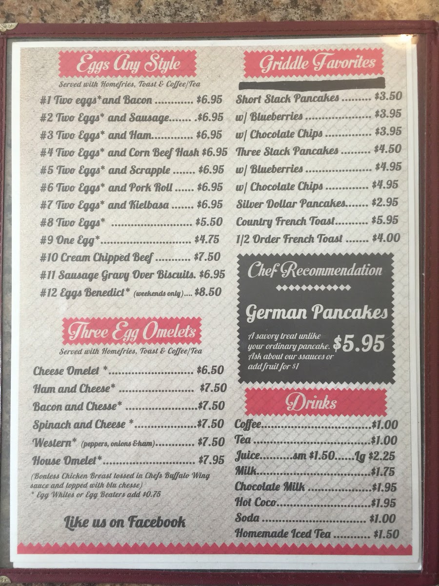 “ We have been coming here for the past two years when we come on vacation. Service is great and all the staff is friendly. We have only tried their breakfast and it is some of the best food we have had. It is worth the 0.50 to add onions to the home fries. Eggs are always cooked to order. I like mine over-medium and my husband over-light. He had the French toast which he said was perfect. And I tried a German Pancake with Cinnamon Vanilla goodness. The pancake was very tasty. I ate the whole thing before trying anything else on my plate. I highly recommend their German pancake as an appetizer to share to see how good it is. I can not wait to go back and get an order of them. They set a high bar for how a German pancake should taste: We have had the same server we have been there and she is friendly and in top of things. She works hard to make sure everyone has everything they need and does a nice job checking in you and not over checking. A must stop if you are visiting here. Hoping to try lunch one day: ”